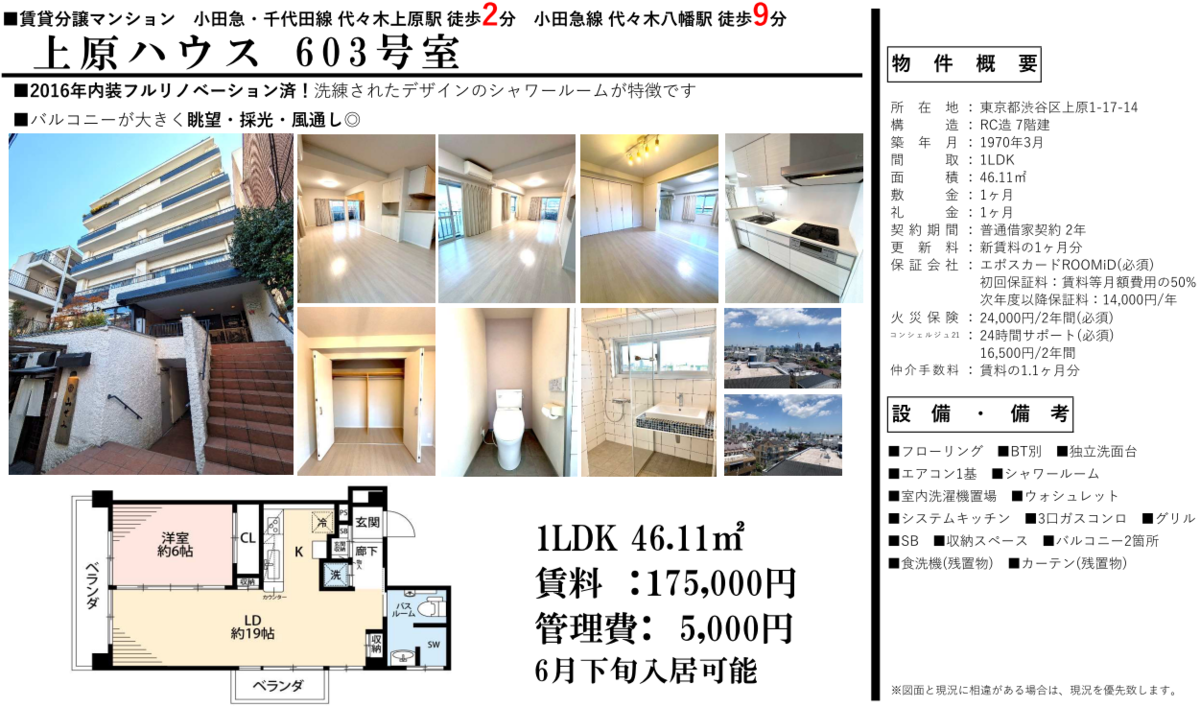 代々木上原賃貸物件 毎日速報!6/24(火)
