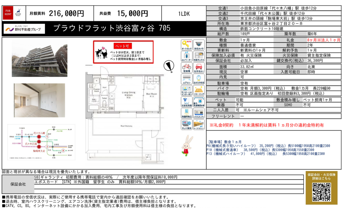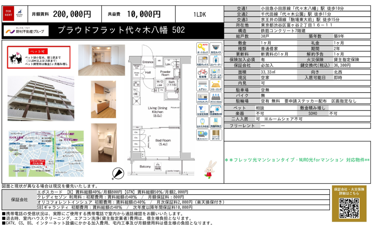 他の不動産会社のように情報を加工することなく、代々木上原エリアの賃貸情報をスピーディーに、どこよりも早くお届けするため、業者間情報をそのままUPしております。見えにくい部分が多々あると思いますが、詳細はお気軽にお問い合わせください。